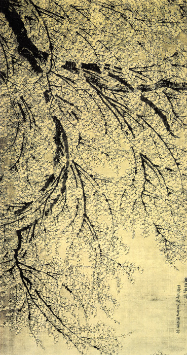 陈淳早期的花鸟画受到老师文徵明的影响,笔墨较为工致秀润,气格含蓄安详。后来他得到沈周浅色淡墨写意花鸟画法的启发,凭着他英发的才气,朝着放逸纵肆的方向发展。并结合他草书的飞扬笔法,充分发挥水墨浓淡晕化的性能,最终形成他笔致潇洒、墨色酣畅、意足气振的独特风格。在此图中,画家不厌其烦地尽情状写梅花,显得梅花繁茂而多,很有气势。真正是画家自己所题:“万玉争辉”。