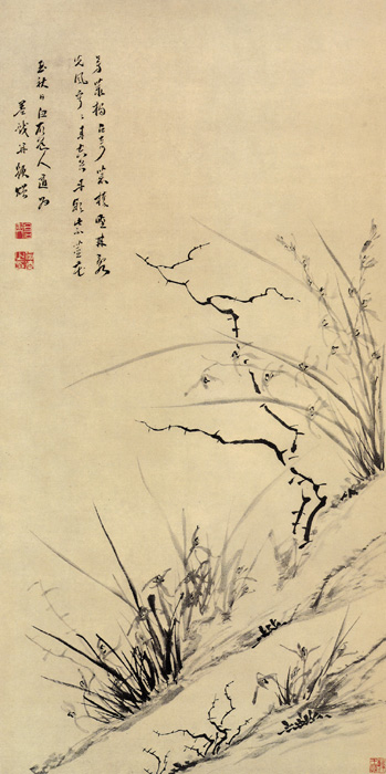 作者何适,广东保安人,于万历、崇祯年间从事绘画活动,常从李流芳游,画传其法;又得沈春泽指授,独以写兰名噪一时,以写乾蕊枯叶见长。此图格调清新,颇得写生妙谛。通过观察实践,信笔渲染,应手成形,生态动人,自有一番风致。
