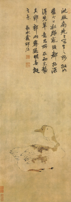 邵弥(约1592—1642),字僧弥,号瓜畴老人,长洲人。所画翎毛,殊不多见。性迂癖,不谐俗。杭州人徐泰曾为邵弥写像,蓝瑛补景,画出了他“瘦如黄鹄闲如鸥”的神态。邵弥能诗,会书法,也善画翎毛,颇具生趣。他被列为“画中九友”之一。邵弥此图用白描表现,笔意简括,予人以生气盎然的感觉,整幅作品,有一定的写实性,虽然是墨笔画,却不失工致之态,笔墨工细秀逸。