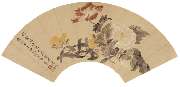 恽寿平为“清初六大家”之一。善山水、花卉、山水早年师承家学,从堂伯恽向,并上溯元四家传统,风格超逸灵秀,花卉继承、发展了北宋徐崇嗣“没骨花”法,创造了设色明净、格调清雅的“恽体”没骨花卉画风,别开生面,一洗时习,被称为“写生正派”的“常州画派”。画上自题:“艳雪微歌处,红罗醉舞时。彩霞长在手,含笑看瑶姬。”揭示了画意。