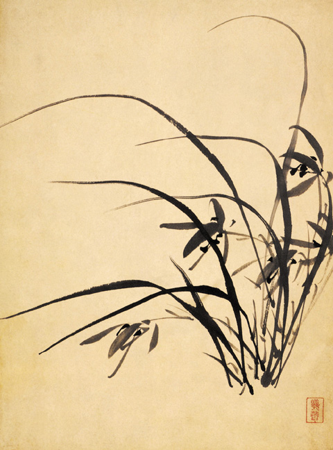 兰竹从来就是士大夫所崇尚咏物言志的媒介。兰花的轻逸飘拂、竹子的高风亮节,是历代花鸟画家所津津乐道的题材。诸此图册仅绘一丛兰花,其风姿潇洒,神态风流,似乎迎风而动。画家用浓墨写兰叶与兰花,几乎不加渲染,一鼓作气,所以画面显得干脆而有气势。