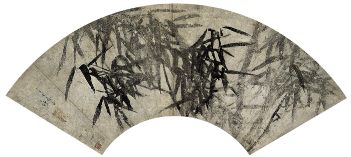 王铎(1592—1652),字觉斯,号十樵,又号痴仙道人,孟津(今属河南)人。他是明天启进士,曾官至礼部尚书,东阁大学士。入清后官至礼部尚书。他善画山水,宗法荆关,也擅写梅竹、兰石,画风别具一格。此图画墨竹一丛。浓墨点苔,风格清新,运墨层次分明,注意用墨色的浓淡来拉开画面空间距离,设色也清新淡雅,是一幅颇有意趣的佳作。