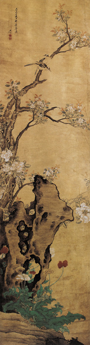 清 樊圻 屏风 设色 纵248厘米 横65.1厘米 天津市博物馆藏