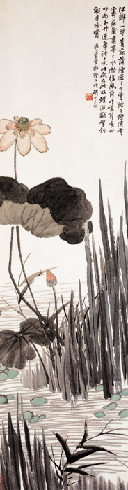 胡公寿(1823—1886),清代书画家。名远,号小樵、瘦鹤、横云山民,以字行,华亭(今上海市松江)人,寓上海。工画山水、兰竹花卉,尤喜画梅。集古今诸家之妙,自成一格。喜用湿笔,浑沦雅秀,得淋淳浓郁之致。此图也体现了画家的这种风格。
