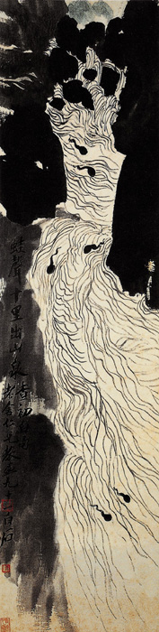 齐白石创作《蛙声十里出山泉》,画上面没有蛙。而观众有如闻蛙声之感,这是绝妙之至的构思。蛙声如何画?据说老人整整想了两夜,后来从诗句规定的“出山泉”三字得到启示,就在“泉”上作文章。但是老人没有画蛙,而是在那四尺长的立轴上,画两山峡谷间泉水汩汩地流向远处来,几只活泼的小蝌蚪在湍急的水流中有欢快地游动着。人们见到有鳃有尾巴的蝌蚪离开了水的源头,告别了它们的妈妈,自然会想到蛙和蛙的叫声,似乎那蛙声随着水声由远而近……