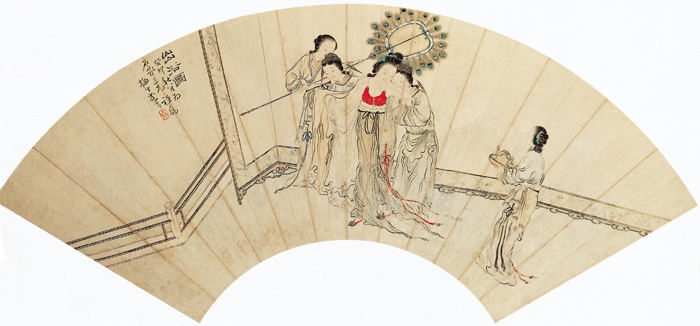此图用轻快而灵动的笔触描绘了出浴女子的闲适姿态。画家继承了粗笔放纵的白描写意人物画的技法,而不受其约束,努力探求适合自己艺术个性的表现手法,以少胜多,以形写神,于粗犷中见细腻,洒脱中见精练。虽讲究笔墨趣味,但能将表现人物形象的严谨性和笔墨传神的抒情性结合起来。