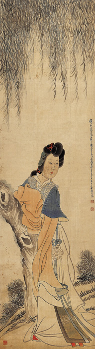 清 任熊 绢本设色 纵141.7厘米 横39厘米 天津人民美术出版社藏