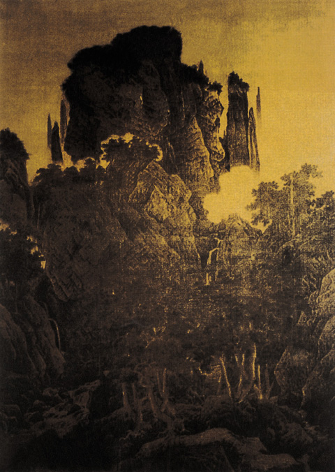 此画有款在远峰上一行:“皇宋宣和申辰春,河阳李唐笔。”此图画法与《江山小景画卷》最为接近。但构图满实, 有一种威压的力量欲突出画面,用浓墨重色画万松深壑,高岭飞泉,云雾峦嶂,山石作大斧劈皴,气势雄厚之极。墨色涩而不枯,厚重而又不失灵气,山石虬劲丰实,笔意不凡,能曲折多变地勾划出丘壑的变化,远山空灵峻丽,似有升腾之意,石下小泉流水,似有汩汩之音,别有一番雄奇秀丽之境界,气魄壮丽,云中山顶,四面峻厚。
