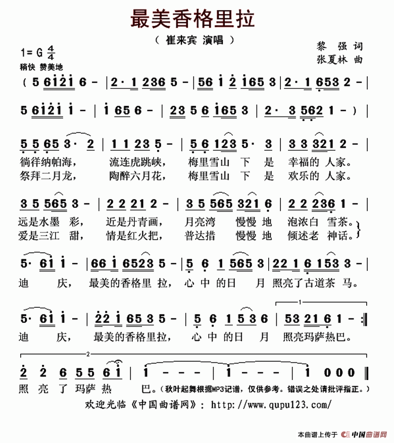 词:黎强 曲:张夏林 唱:崔来宾