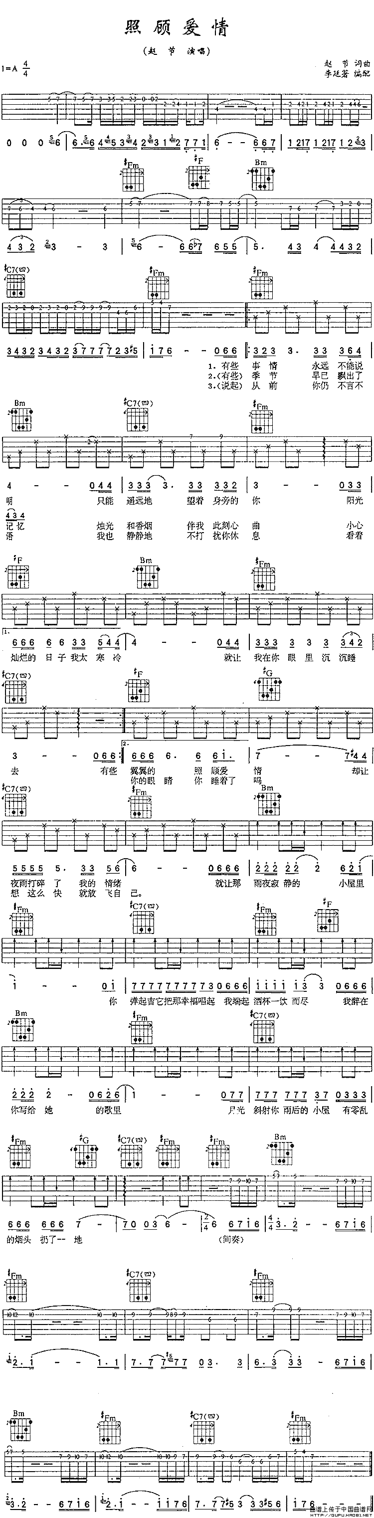 吉他《照顾爱情》