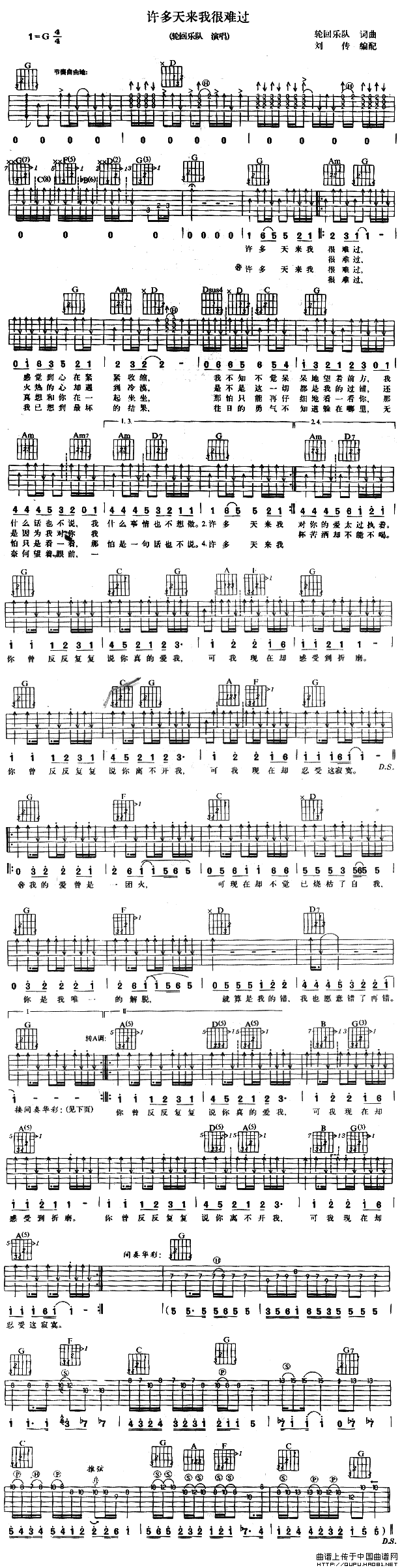 吉他《许多天来我很难过》