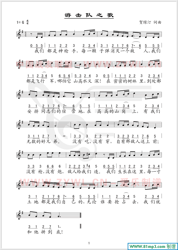 栏目导航: 曲谱资料 >> 军歌民歌 >> 五字歌名