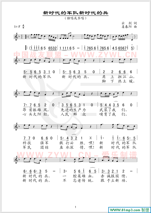 中国人民解放军通信兵进行曲 线、简谱混排版