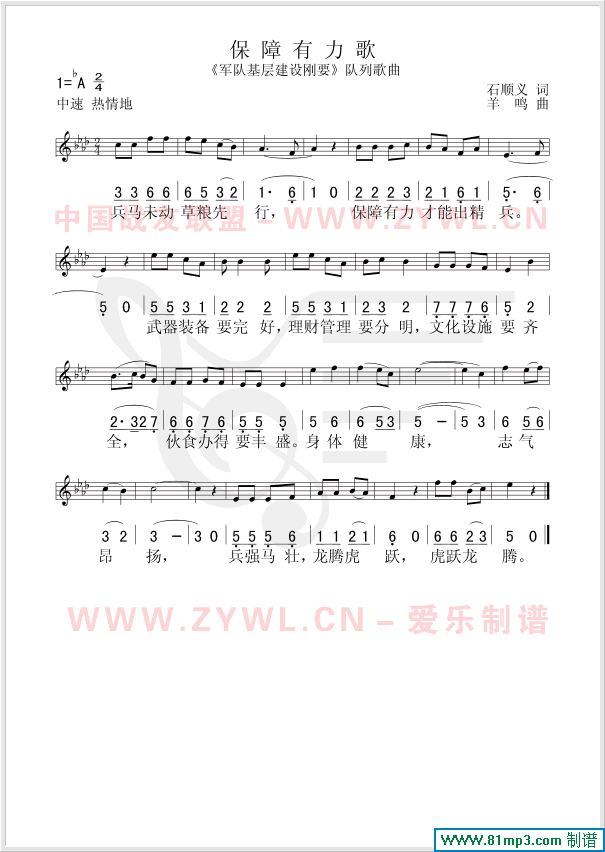 保障有力歌 线、简谱混排版