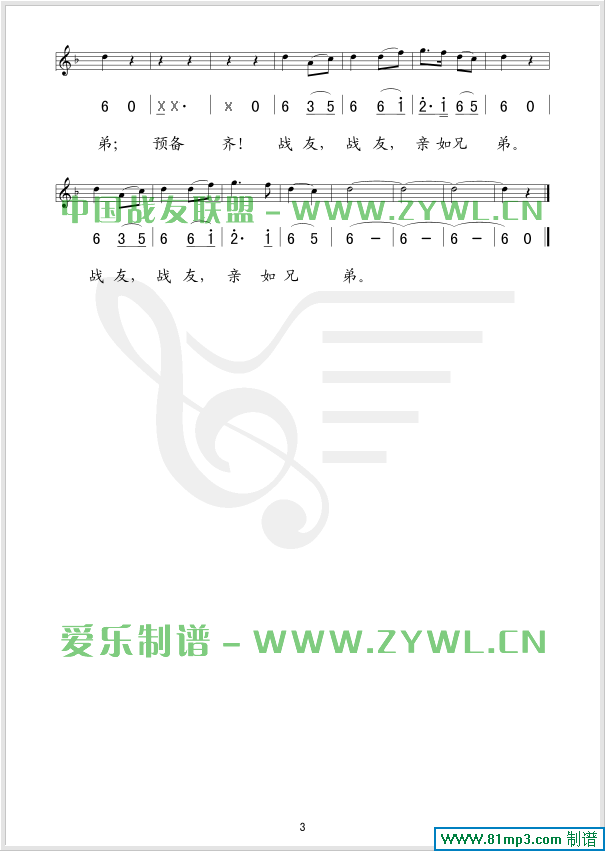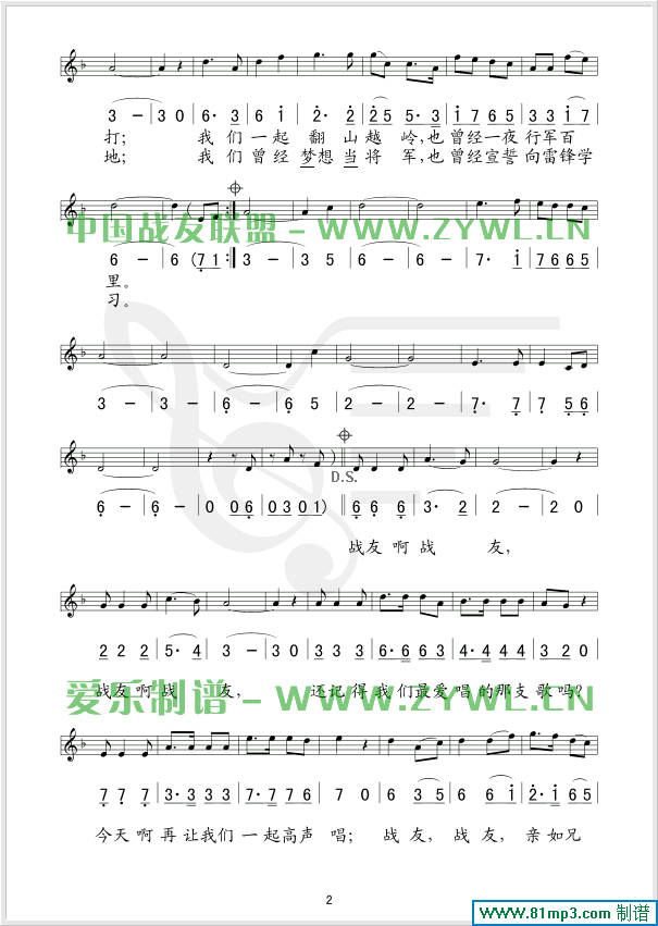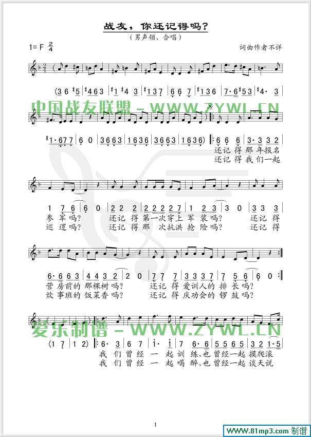战友,你还记得吗? 线、简谱混排版