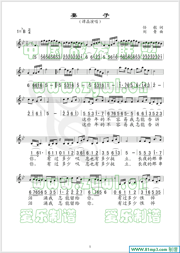 妻子 线、简谱混排版
