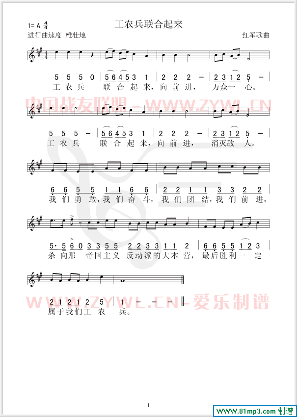 工农兵联合起来 线、简谱混排版