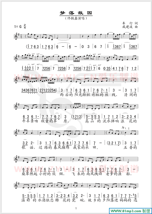 梦落故园 线、简谱混排版
