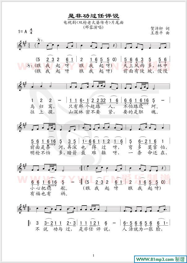 是非功过任评说 线、简谱混排版