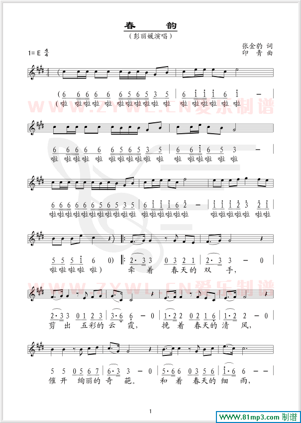 春韵 线、简谱混排版