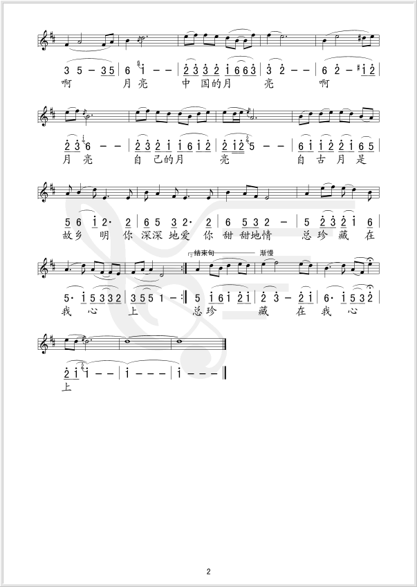 中国的月亮 线、简谱混排版