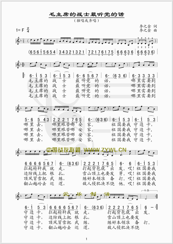 毛主席的战士最听党的话 线、简谱混排版
