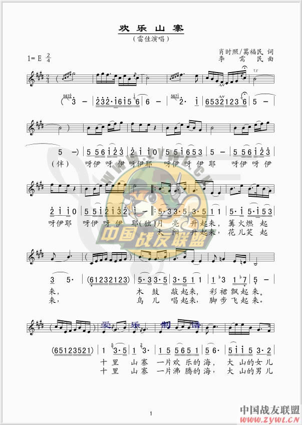 欢乐山寨 线、简谱混排版