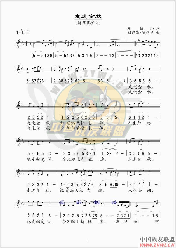 走进金秋 线、简谱混排版