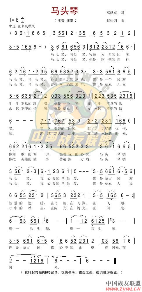 马头琴 线、简谱混排