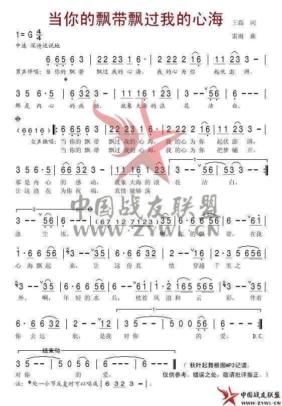 当你的飘带飘过我的心海简谱