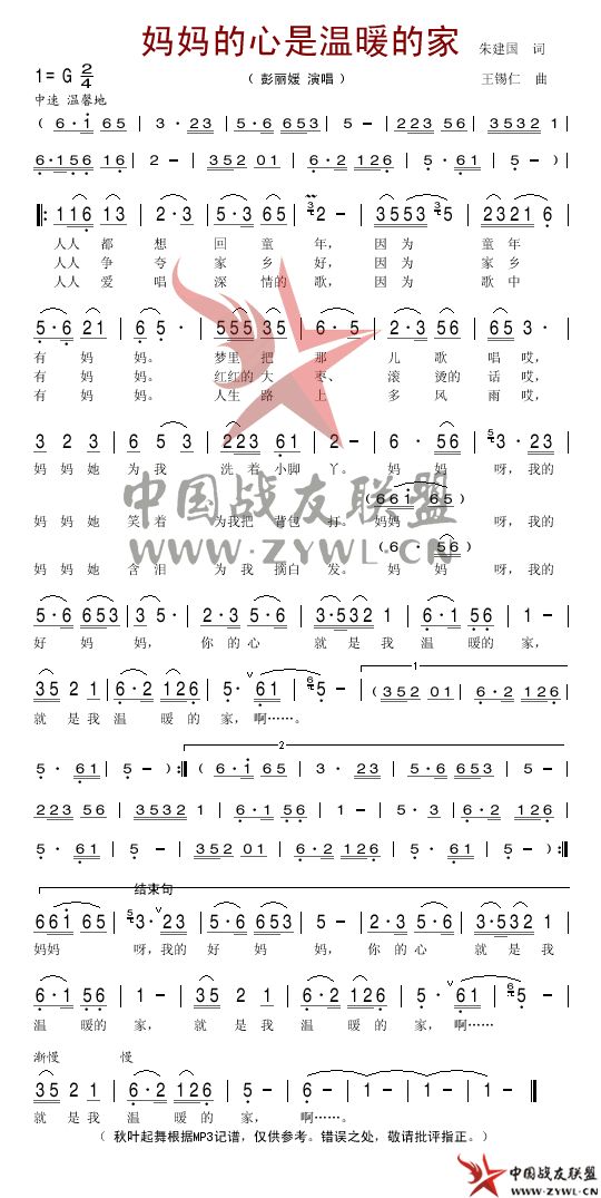 妈妈的心是温暖的家简谱