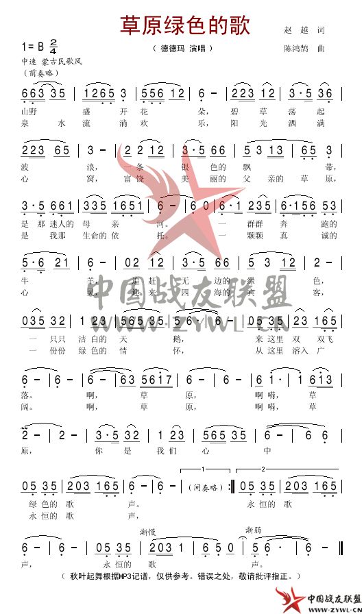 草原绿色的歌简谱