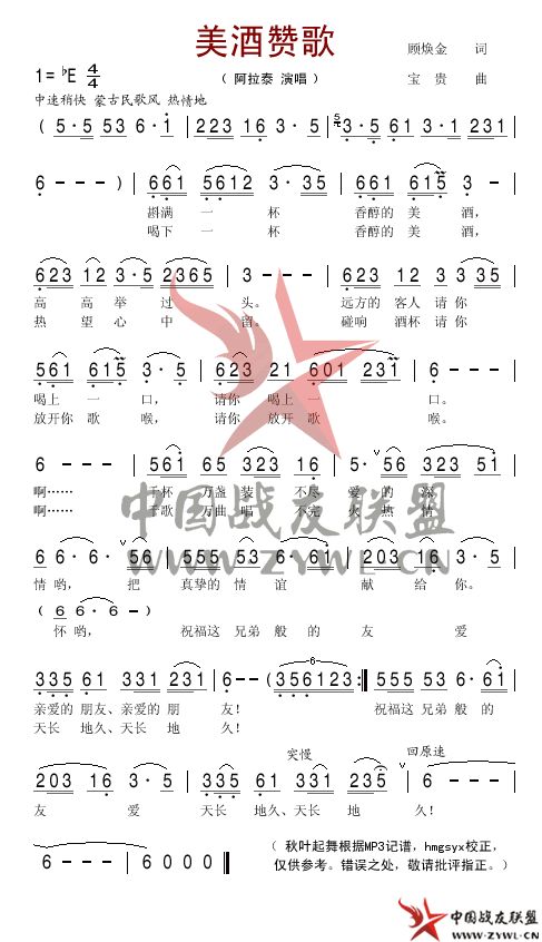 美酒赞歌简谱