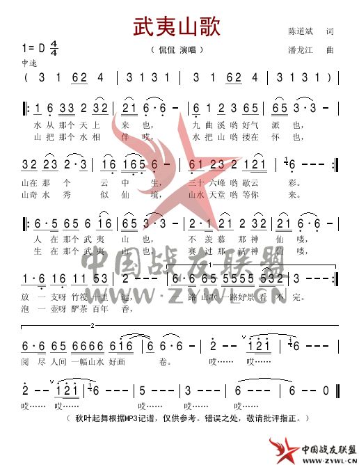 武夷山歌简谱