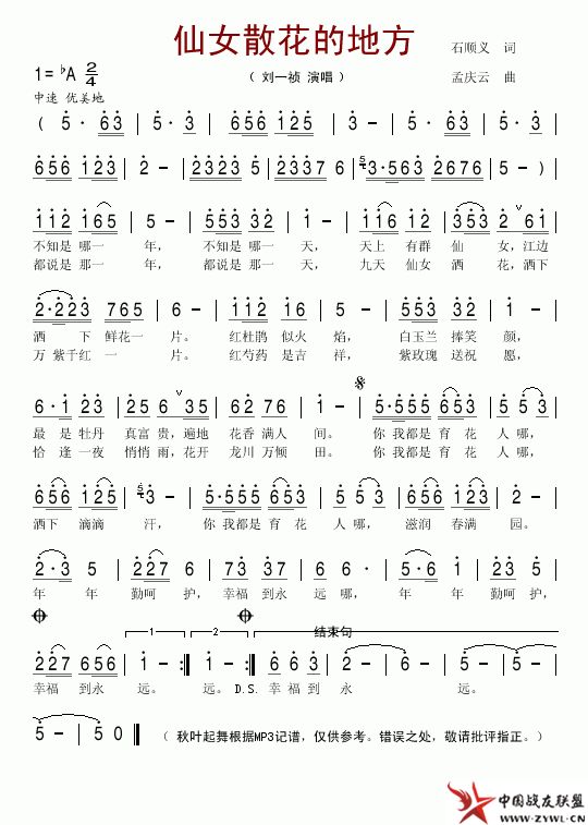 仙女散花的地方简谱