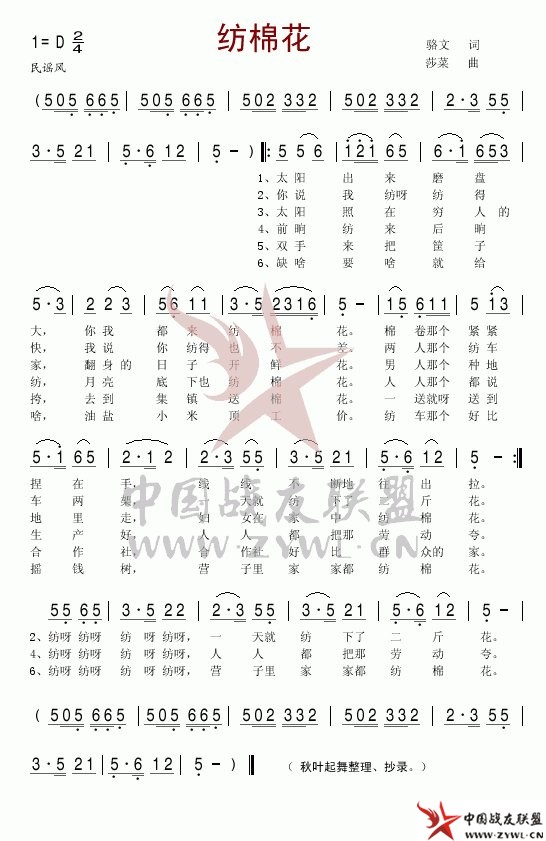 纺棉花简谱