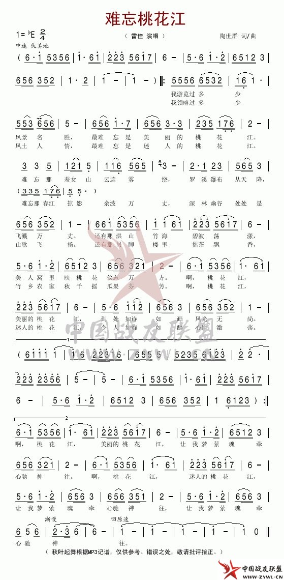 难忘桃花江简谱