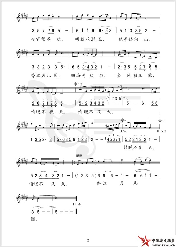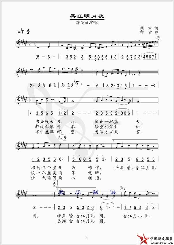 香江明月夜 线、简谱混排版