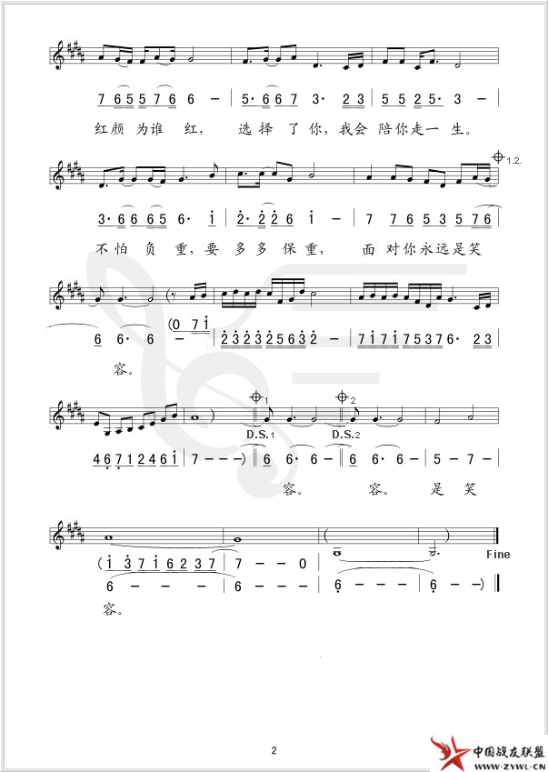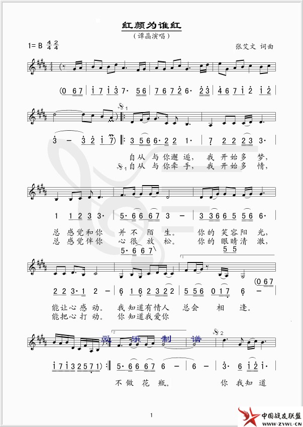 红颜为谁红 线、简谱混排版