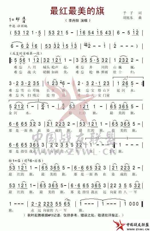 最红最美的旗简谱