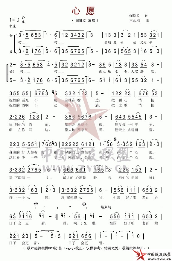 心愿简谱