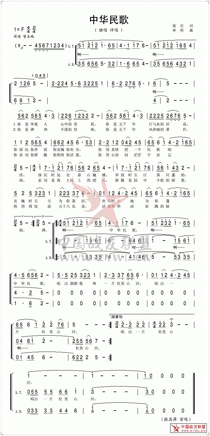 中华民歌简谱