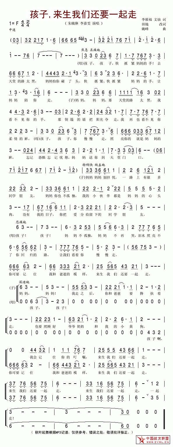 孩子来生我们还要一起走简谱
