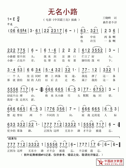 无名小路(中国霸王花插曲)