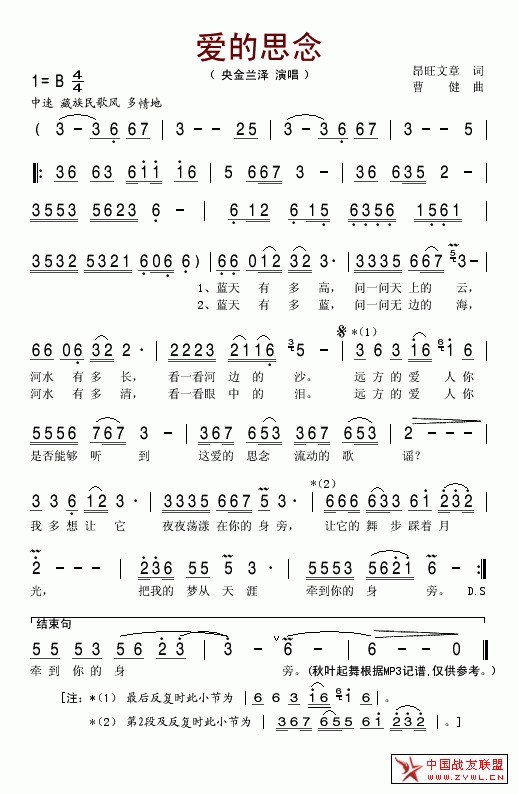 爱的思念简谱(央金兰泽)