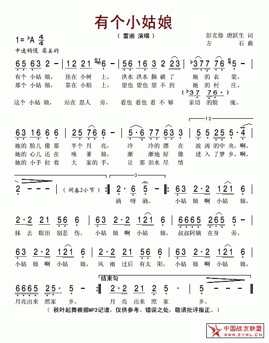 有个小姑娘简谱