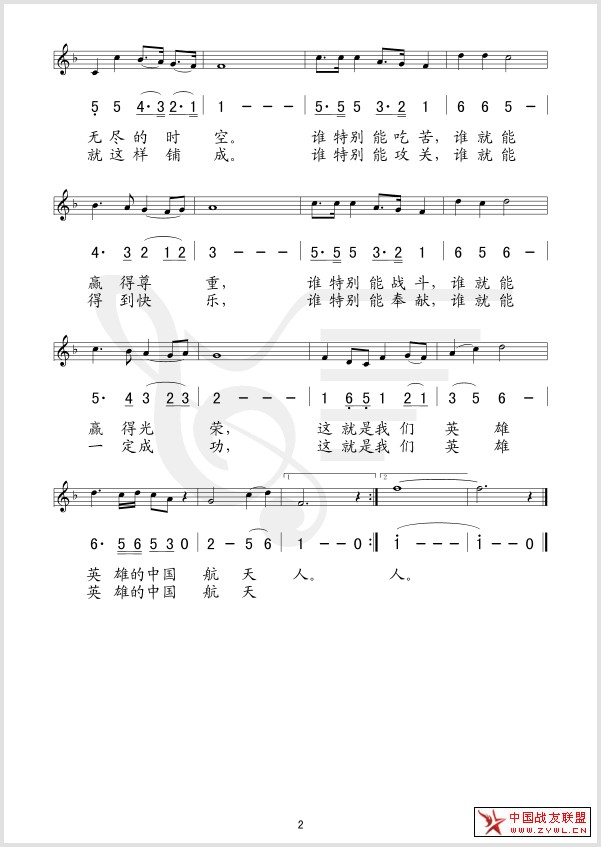 中国航天人之歌 线、简谱混排版