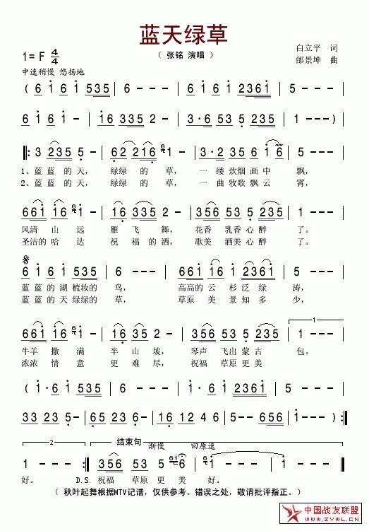 蓝天绿草简谱