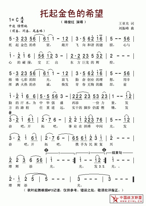 托起金色的希望简谱