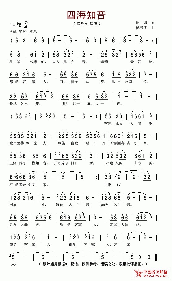 四海知音简谱